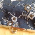 刺繍生地を使用して製作した、がま口のポーチ、各色一点限定です。