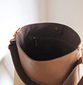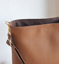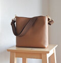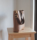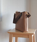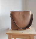 作品が到着いたしました。 優しいラテグレージュ色と細いレザーハンドルが、とても上品でフェミニンな印象の素敵なバッグですね。 季節を問わず活躍してくれる事間違いありません。ありがとうございました。