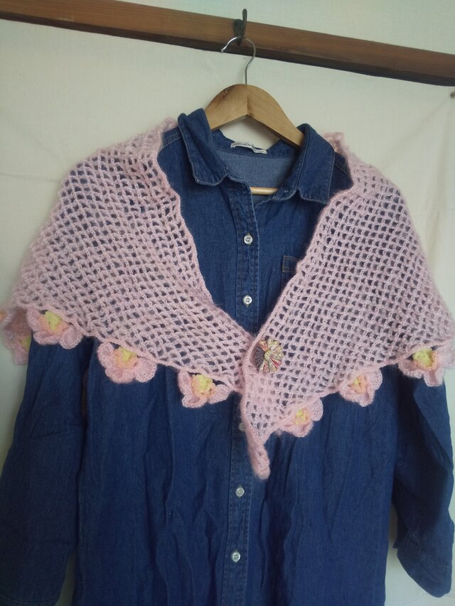 細いモヘア毛糸で制作。ふんわりストールです。