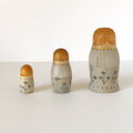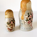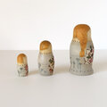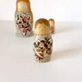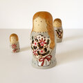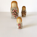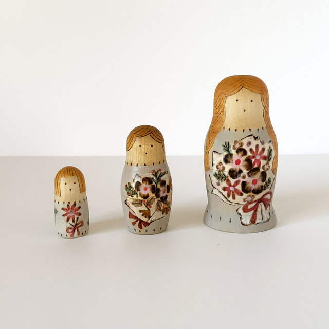 花束をもった3人組のマトリョーシカ。