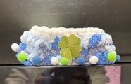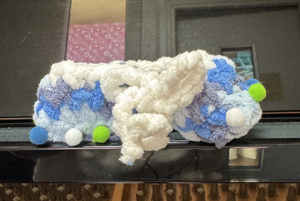うさぎさん用のふわふわケープをブルー毛糸で制作しました
