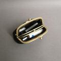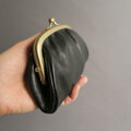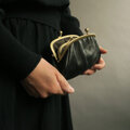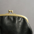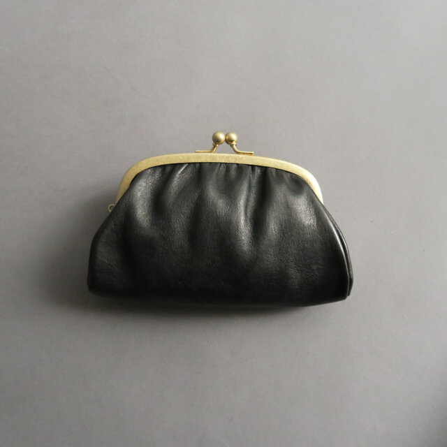 ギャザーを寄せた革の陰影が印象的な台形の親子がま口のケースです。
