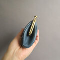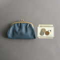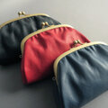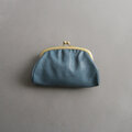 ギャザーを寄せた革の陰影が印象的な台形の親子がま口のケースです。