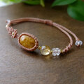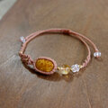 フォッシルコーラル(インドネシア産)化石珊瑚・天然シトリン マクラメ編みブレスレット 誕生日プレゼントギフト 3818