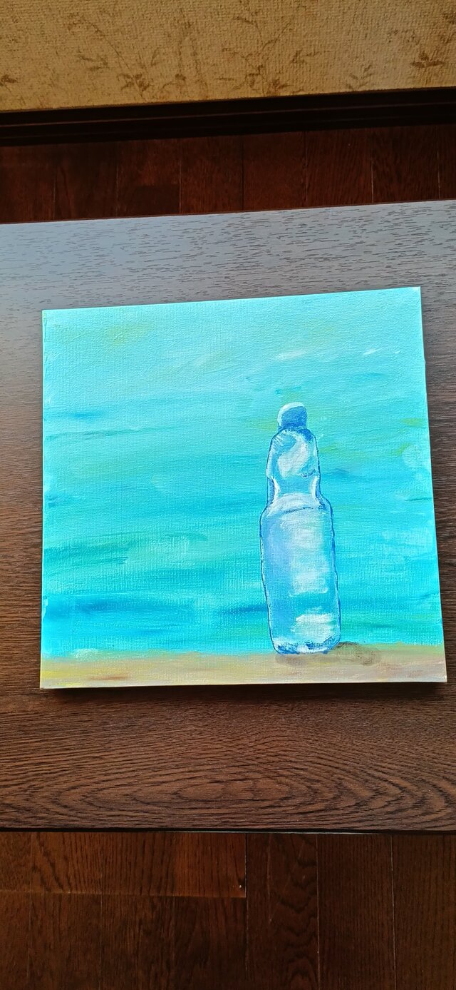 サイズは240×240×15mmのキャンバスでアクリル絵の具画です