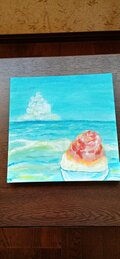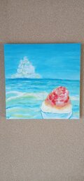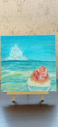 サイズは240×240×15mmのキャンバスでアクリル絵の具画です