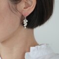 やわらかな艶をまとった淡水パールを、ぶどうの房のように連ねたピアス。