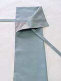 寸法は約13センチ×136センチ、上下端から各10センチのところに76センチの紐がついています。(弓に巻いて駒結びができるくらいの長さです蝶結びができる長さはありません)