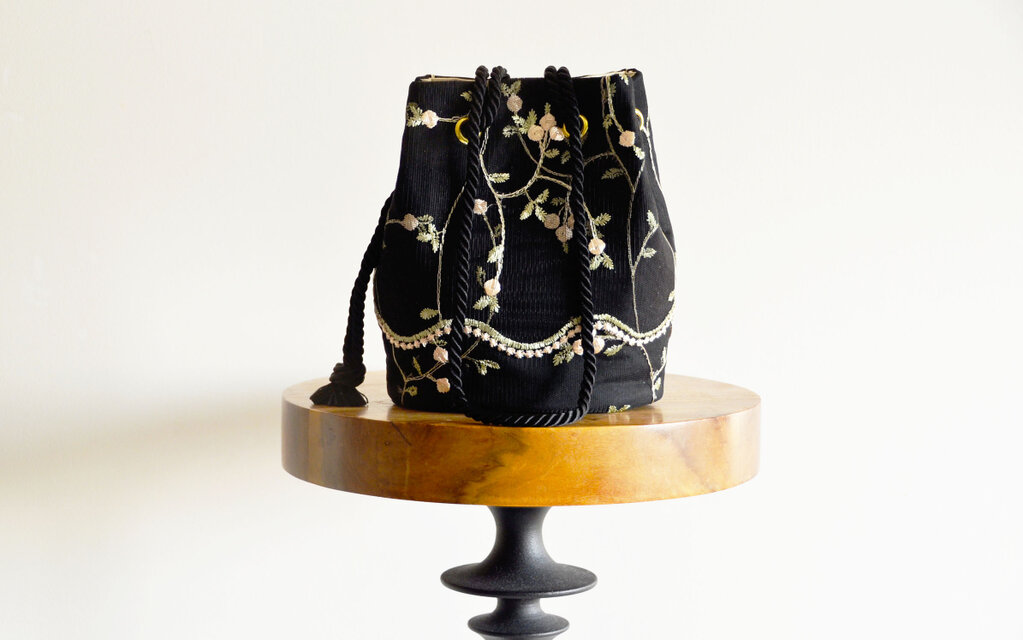 数量限定! ペールフラワーチュール刺繍スカラップ ブラック 2way ポシェットマリンバッグ フォーマルコーデ