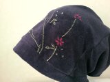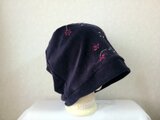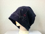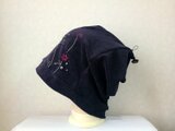 魅せる帽子☆刺繍が素敵♪ゆるゆる自遊自在!?頭巾風ワッチ~ブラック
