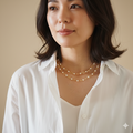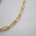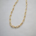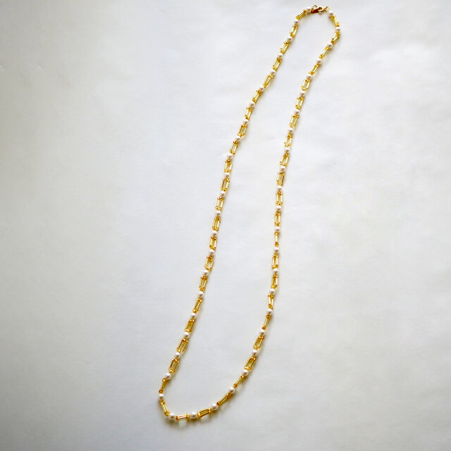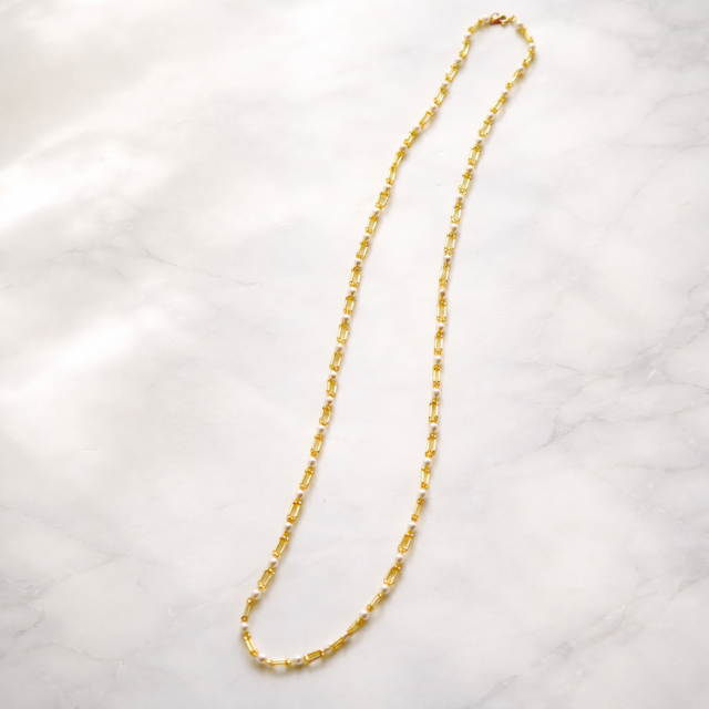 チェーン風ビーズとパールのネックレス・細ロング(ゴールド)【受注】
