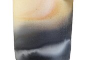 外側は無釉、内面は施釉。カーボンが土に入り込み漆黒状となる、