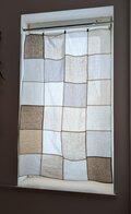 パッチワークのれん、麻の生地感と落ち着いた明るい配色でお部屋がとてもよくみえます。この夏、見た目だけでも涼しくワクワクとした気持ちでいたいものです! すてきなのれんでした 本当にありがとうございましたm(_ _)m