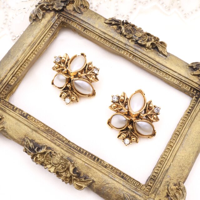 アメリカで買い付けた、ホワイトカラーのストーンを主役にしたヴィンテージイヤリング。