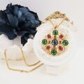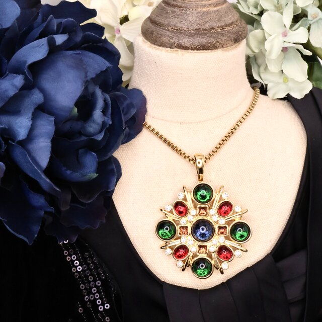 【フランス買付】 マルチカラージュエル ロゼットモチーフ 2WAY ブローチ&ネックレス アメリカ製 ヴィンテージ 1980s