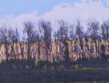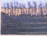 遠い丘の向こう、反射した午後の日差しが木々の隙間から煌めいている。