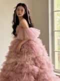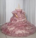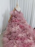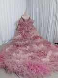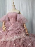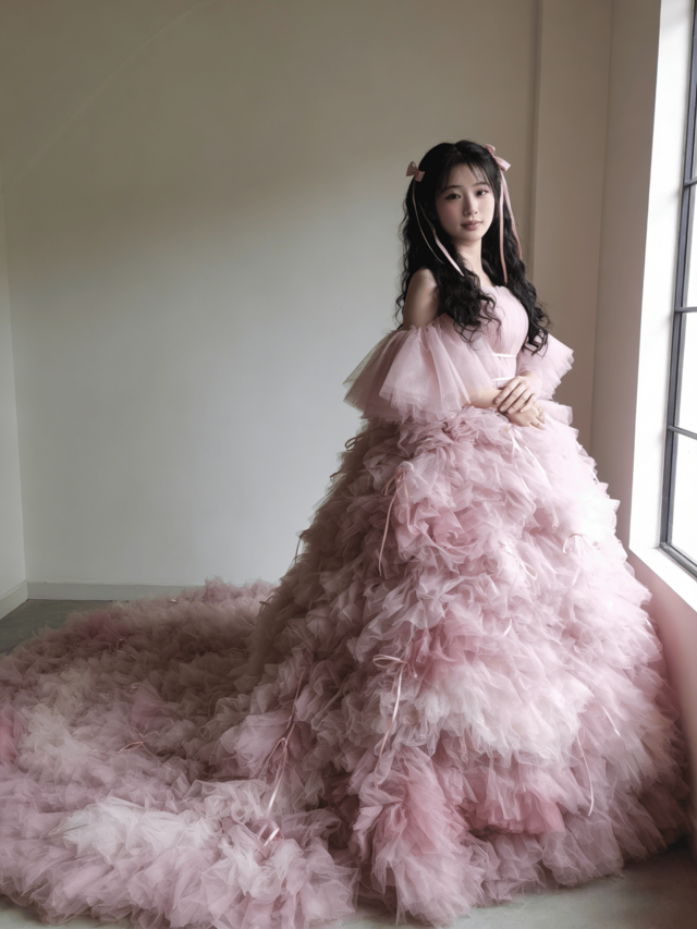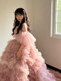 豪華!カラードレス ピンク グラデーション ふわふわ袖 ボリュームドレス ロングトレーン 花嫁 前撮り