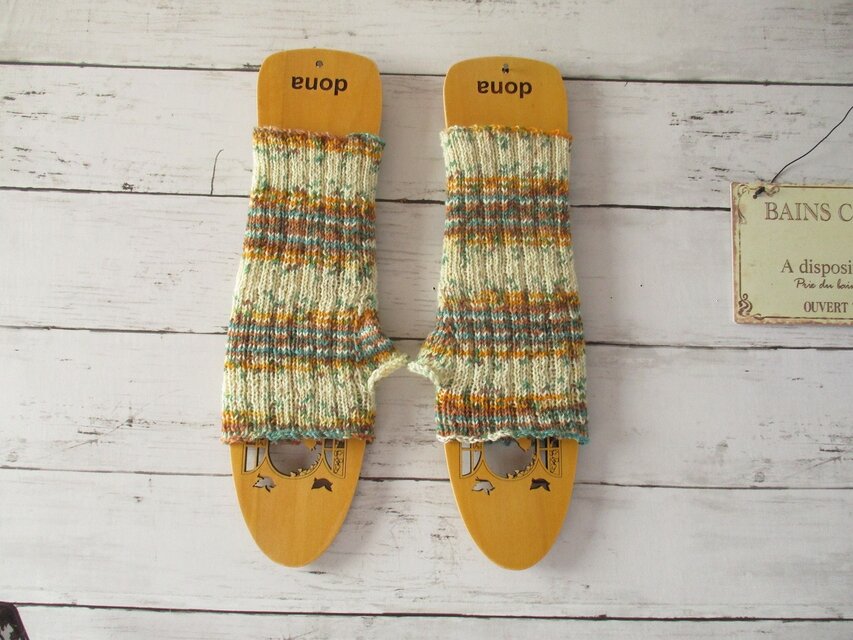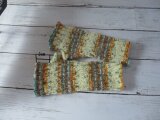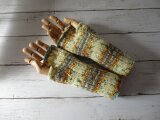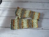 ドイツのブランド Opal Aquarell 11530 Sonnenkraftを使用して 編んだハンドウォーマーです。
