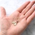 タンザニア産、ペアシェイプの宝石質グリーンカイヤナイトを使ったピアスです。 マスカットのような爽やかなグリーンがとても印象的。表面にはカイヤナイトでは珍しいマイクロカットと呼ばれる細かなカットが施され光に反射して美しい光を放ちます。カイヤナイト特有のミステリアスなホワイトのシラーやぷるんとした水々しい艶が目を引くピースです。