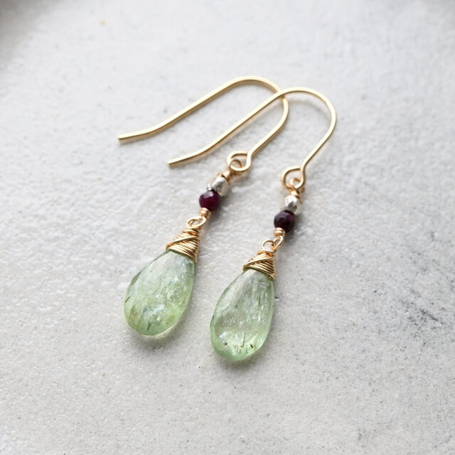 グリーンカイヤナイトとルビー×カレンシルバーピアス・14kgf・イヤリング変更可