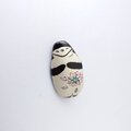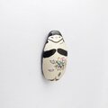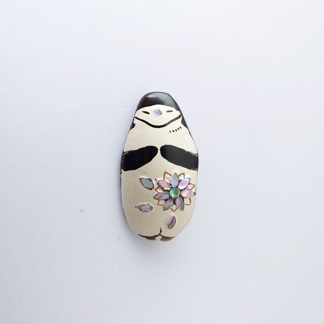 ヒゲペンギン蓮の花螺鈿 漆ブローチ
