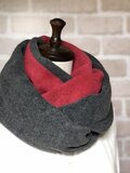 ボリュームたっぷり❣️フリースのあったかスヌード❤️ルビーレッド×チャコールグレー