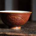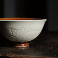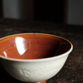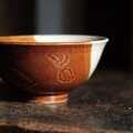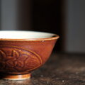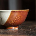 バイカラーで素敵◆リーフの文様 時代物 陽刻小碗 飯碗 骨董/antiques 古民家 古道具 大正〜昭和初期