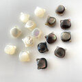黒蝶貝には、グレー〜ベージュ系のやわらかな色合いや、白く見える部分が現れることがあり、それぞれが自然が描いた一点ものの表情です。