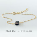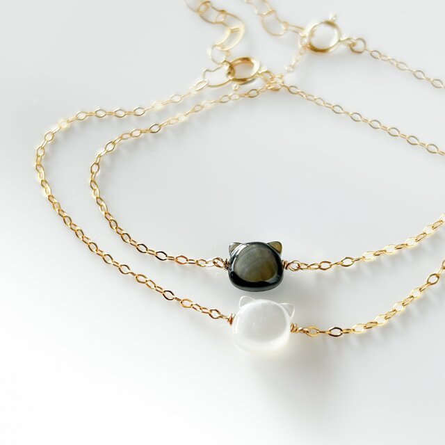 まいにち猫パレード!✧ シェル猫のきらり細チェーンブレスレット|14kgf (白猫 / 黒猫)