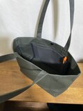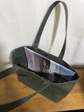 こちらは国産帆布にパラフィン加工(ロウを染み込ませてる)がされた生地のショルダーバッグです。
