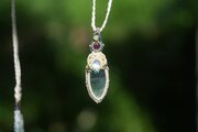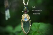 蒼の彼方★pink tourmaline ムーンストーン フローライト マクラメネックレス2098