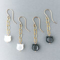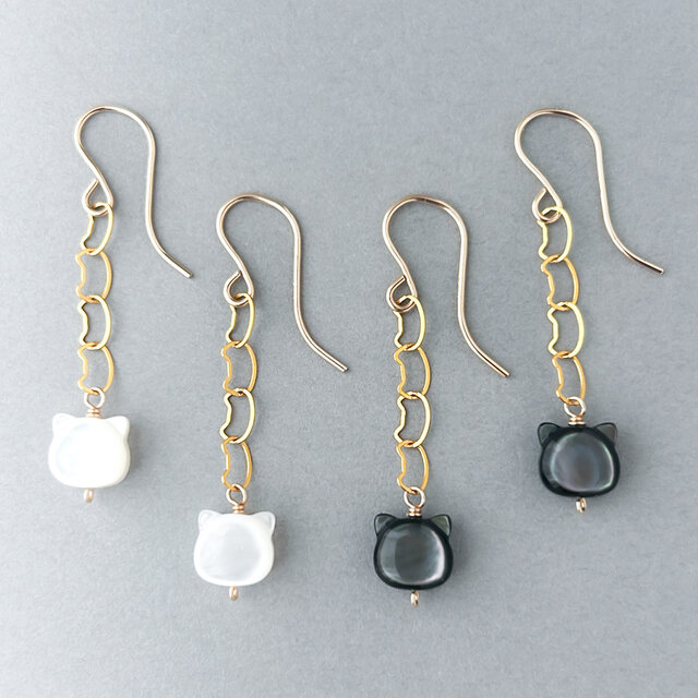 まいにち猫パレード!✧ 揺れるシェル猫|猫チェーンピアス(イヤリング)|14kgf|白猫/黒猫