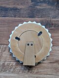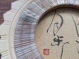 円形のこのお洒落なフレームと合わせるため、敢えて紙の皺を伸ばし過ぎず、紙のシミを気にせず、ナチュラルさを保ちながらモダンな雰囲気の作品に仕上げました。