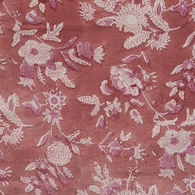 インド ブロックプリント生地 [50cm単位切売] サンガネリ モーブピンクフラワー 花 SA IF0431