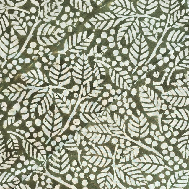 インド ブロックプリント生地 [50cm単位切売] サンガネリ 白抜きオリーブ木の実 花 グリーン SA