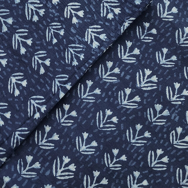 インド ブロックプリント生地 [50cm単位切売] アコラ 二輪の小花 インディゴブルー SA フラワー IF0448