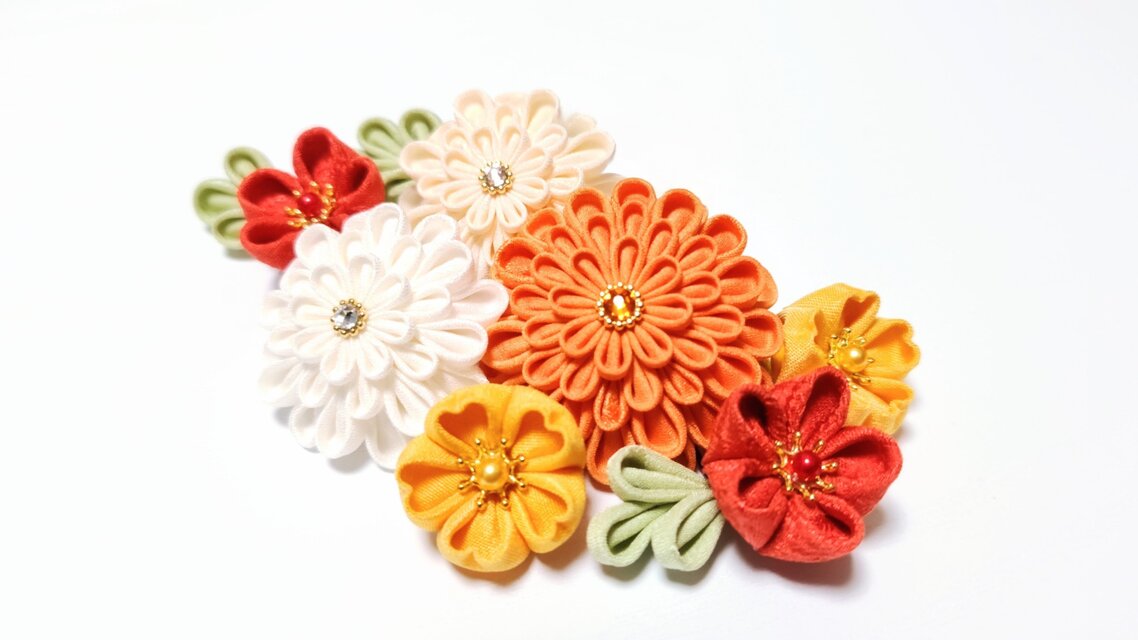 和 和風 絹 正絹 シルク 綸子 つまみ細工 丸つまみ 半くす 花 フラワー ダリア 桜