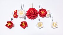 和 和風 絹 正絹 シルク 綸子 つまみ細工 丸つまみ 半くす 花 フラワー ダリア
