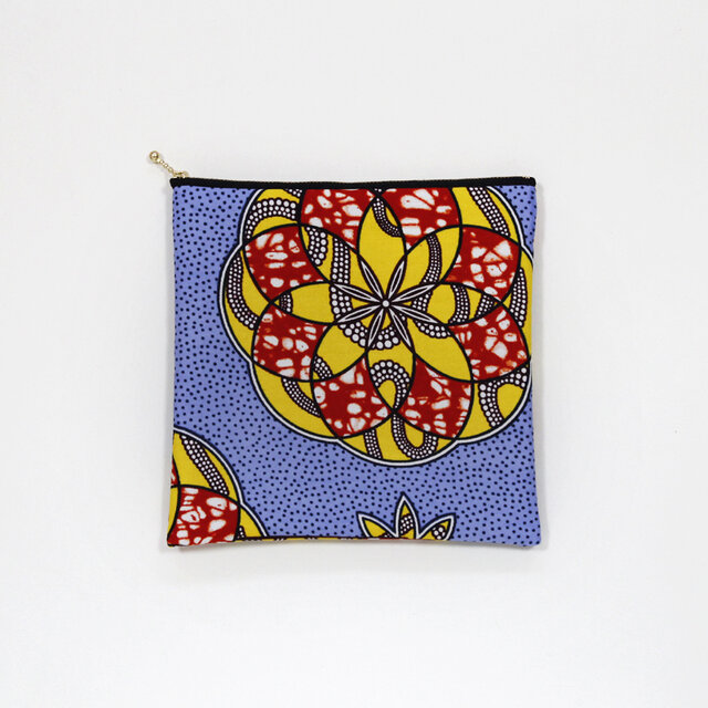 鮮やかで大容量、アフリカ布のフラットポーチ