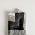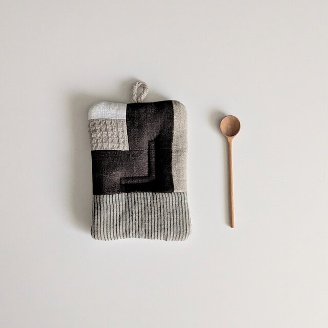 リネンの鍋つかみ/ポットマット ブラウン パッチワーク
