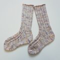 手編みの靴下 長め丈 「朝靄」