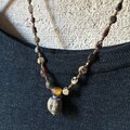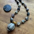 *悠久のときのネックレス。@テラコッタの出土ビーズ+ローマングラスのかけらビーズ+ガラスシードビーズ+真鍮のアナスヤビーズ