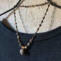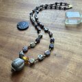 時代もかなりあるようです。トップの玉の上下はベネチアのシェブロンのスライス玉くすんだオレンジのセミクリアのビーズはアフリカの再生ビーズ。