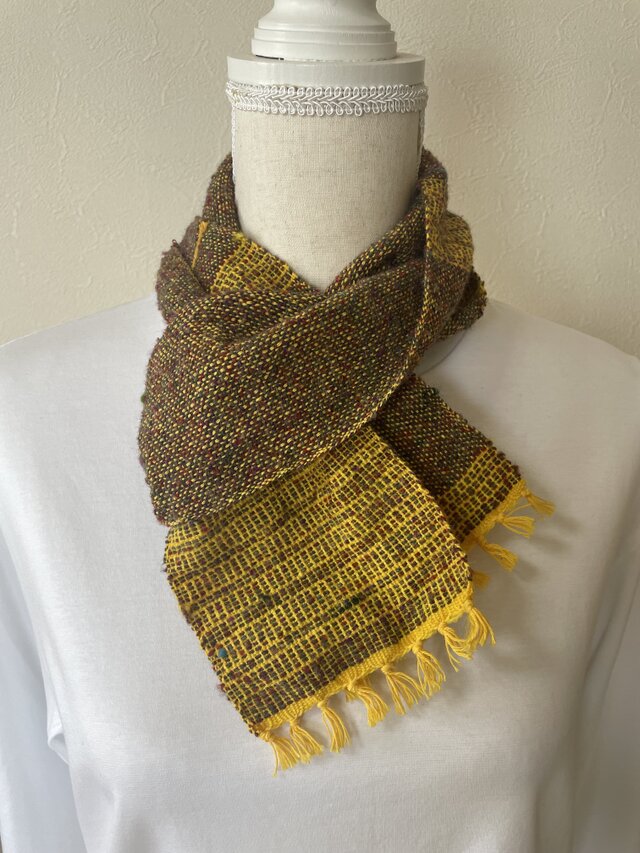 キーマカレーのような元気の出るイエローのミニマフラーです。