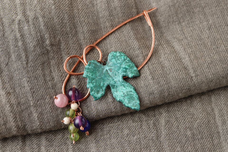 素材:ノブドウの葉(エレクトロフォーミング/ 緑青加工)