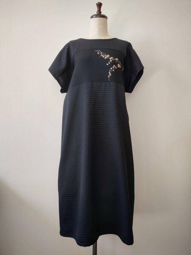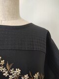 折角の刺繍された可愛い花を生かしたくウールの服地生地と組み合わせてみました。
