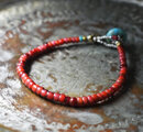 素材:ガラス、oldオリッサブラス、ロウビキ紐、カレンシルバー、シルバー、ターコイズ