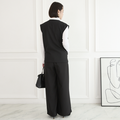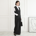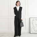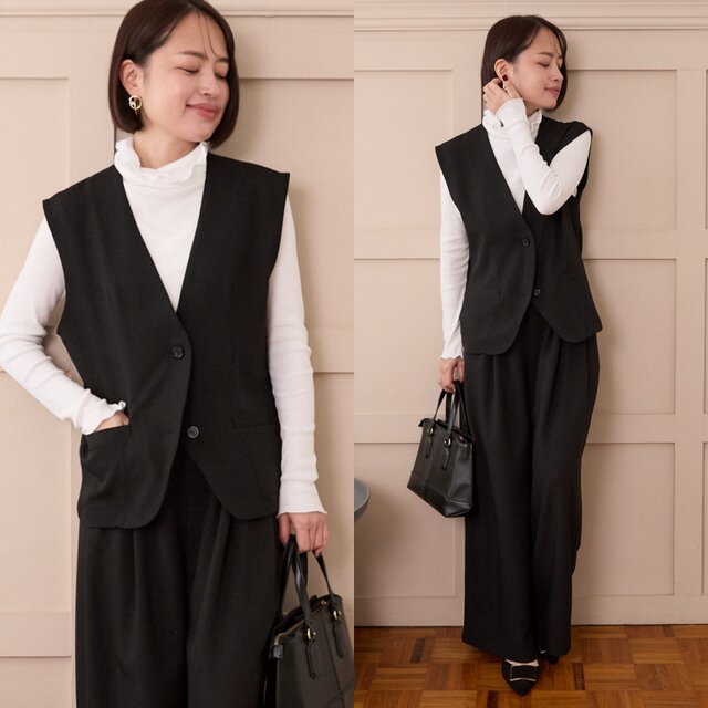 【着回し効くセットアップ】美シルエット✨ サラサラ素材 ジレとプリーツワイドパンツ セット ブラック
