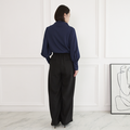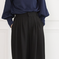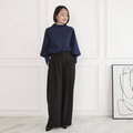 プリーツで立体感を持たせたワイドパンツ。