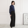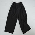 プリーツタック ワイドパンツ 後ろウエストゴム 【4サイズ】 ブラック 0635BK